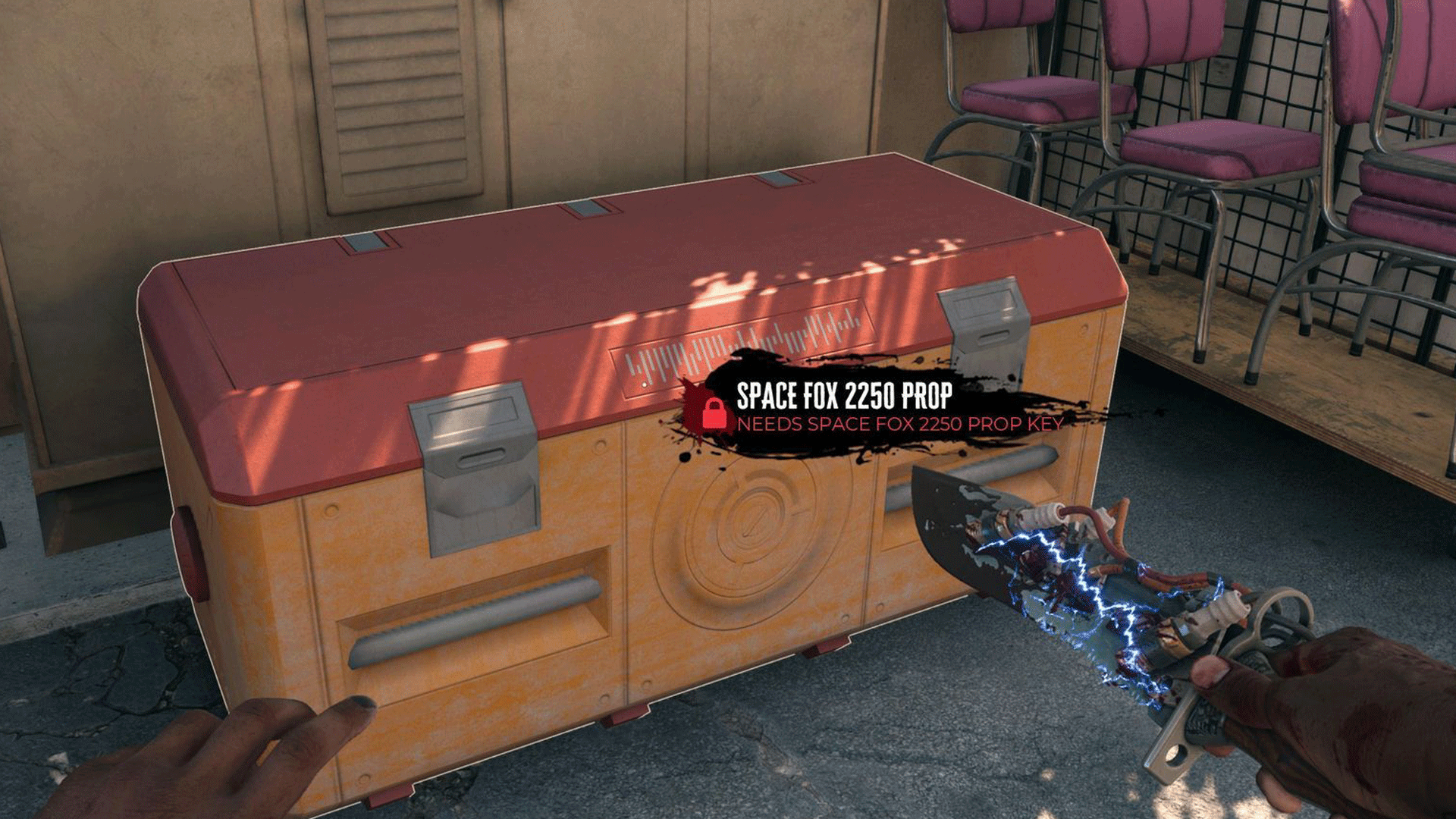 Al obtener la llave, diríjase directamente a la construcción de uno para encontrar el contenedor Space Fox 2250 Prop. Ábralo con la ayuda de la llave para adquirir la poderosa Pistola Electrocutor.