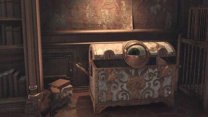Acércate, toca X/Cuadrado y agarrarás lo que hay dentro, alertando finalmente al cofre del ojo y enviándolo a una especie de espiral de desesperación. Fue engañado y perdió sus pertenencias, y podrás ver la derrota en su única y triste retina.
