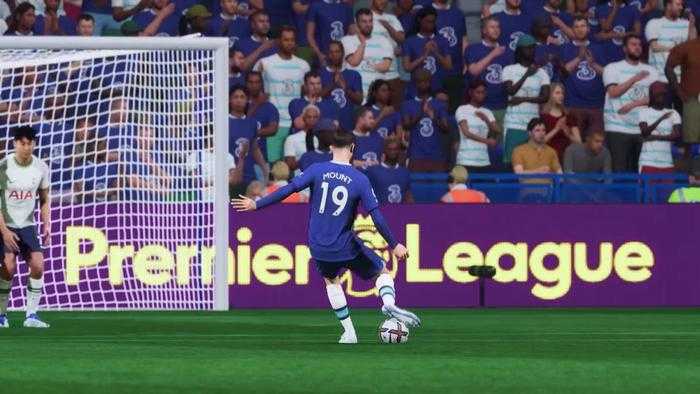 Luego, usará el joystick izquierdo para inclinar la cámara, lo que cambia el área de la meta hacia la que apunta la línea naranja. Esto es más similar a cómo los juegos anteriores de FIFA usaban el joystick derecho, para ajustar la cámara hacia la izquierda o hacia la derecha, y la posición de tu disparo en consecuencia.