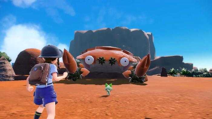 En el tráiler, nos presentaron a nuestro primer titán: un nuevo Pokémon paldeano llamado Klawf. Basado en un cangrejo con mejillas sonrosadas, hay una enorme versión Titán del monstruo entre los especímenes de tamaño normal alrededor de Stony Cliff. El tráiler muestra un Sprigatito enfrentándose al cangrejo gigante, pero eso es todo lo que tenemos por ahora.