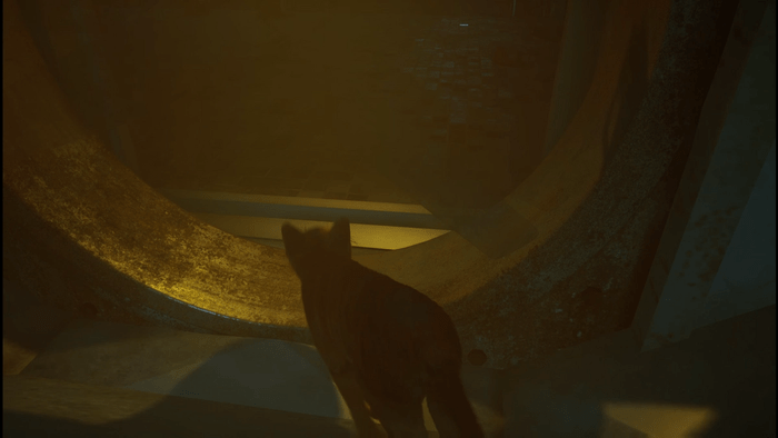 Stray no tiene un sistema de salto libre. Aparentemente destinado a imitar la relativa gracia de un gato, solo puedes saltar a ciertas repisas. Simplemente haga clic en X cerca de una repisa y el gato lo cruzará. Es posible que el juego no fluya tan bien con secciones de plataformas delicadas, por lo que elimina esto para un enfoque más centrado en los rompecabezas.